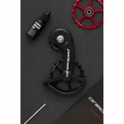This OSPW System has handbuilt CeramicSpeed Bearings installed in each pulley and it comes with a four-year manufacturer’s warranty as standard. Featuring a 13-tooth upper pulley wheel and a 19-tooth lower pulley wheel to provide absolute optimisation of the rear derailleur. The upper and lower oversized aluminium pulley wheels come fitted with standard CeramicSpeed Bearings. Also included in the box is a 15ml dropper bottle of CeramicSpeed Bearing Oil.
