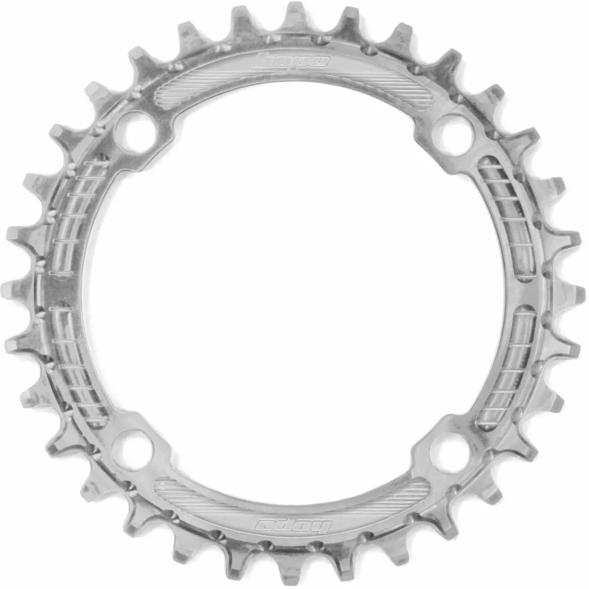 CNC machined in Barnoldswick, England 7075-T6 aluminium Available in Black, Silver or Gold. Available as a 30t,32t, 34t and 36t Chainring size Bolt Circle Diameter (BCD): Separate 4x96mm and 4x104mm options No need to run a chain device Designed to work with conventional 9, 10 or 11-speed setups Weight from 41g Speed: 9/10/11 Speed MTB: Yes