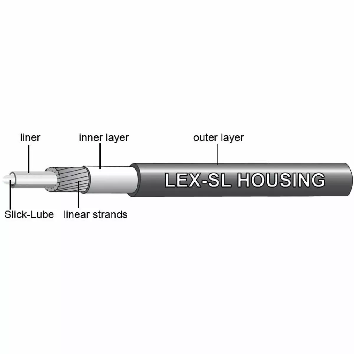 XEX-SL Outer Cable: This gear outer features lightweight, braided steel strands that wrap around a slick-lube liner to create a compressionless ring. This provides the accurate cable movement needed for modern drivetrains, with a weight savings of 50% compared to traditional linear strand shift housing.