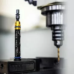 Innovative concealed mountain bike multi-tool that discretely and securely inserts into the opening of a handlebar. It’s constructed from lightweight, durable machined aluminium and features hardened-steel tool bits.