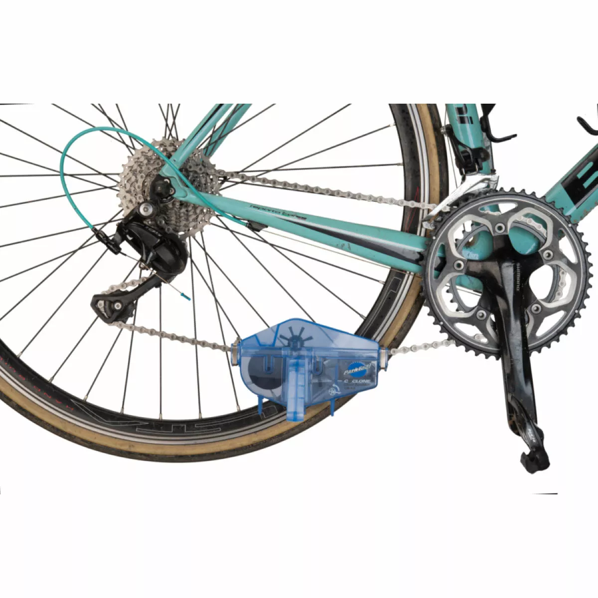 The Park Tool Chain Gang chain cleaning system contains everything needed to quickly and easily clean the chain, freewheel cogs, and chainrings.